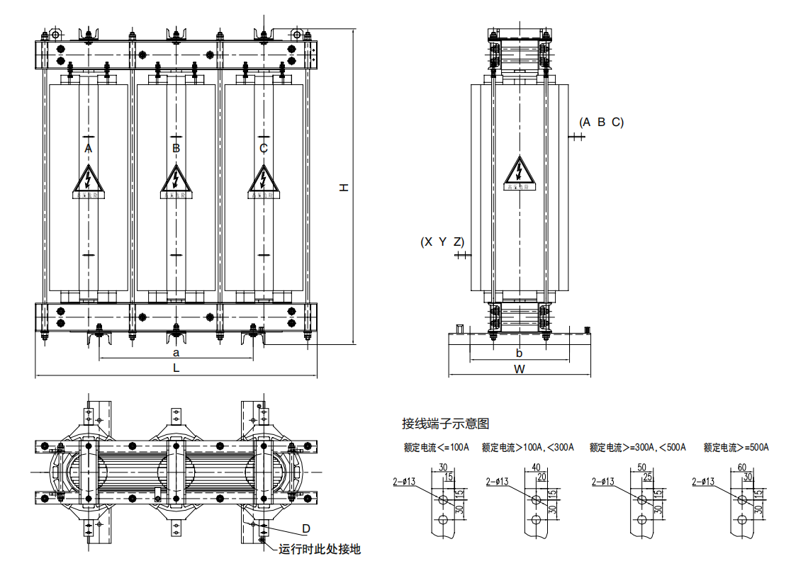 體積結構;高壓串聯電抗器三相鐵芯成黃金分割比例,結構合理,占地體積小,維護更換方便,頂部裝有吊環,便于柜內安裝及現場施工。