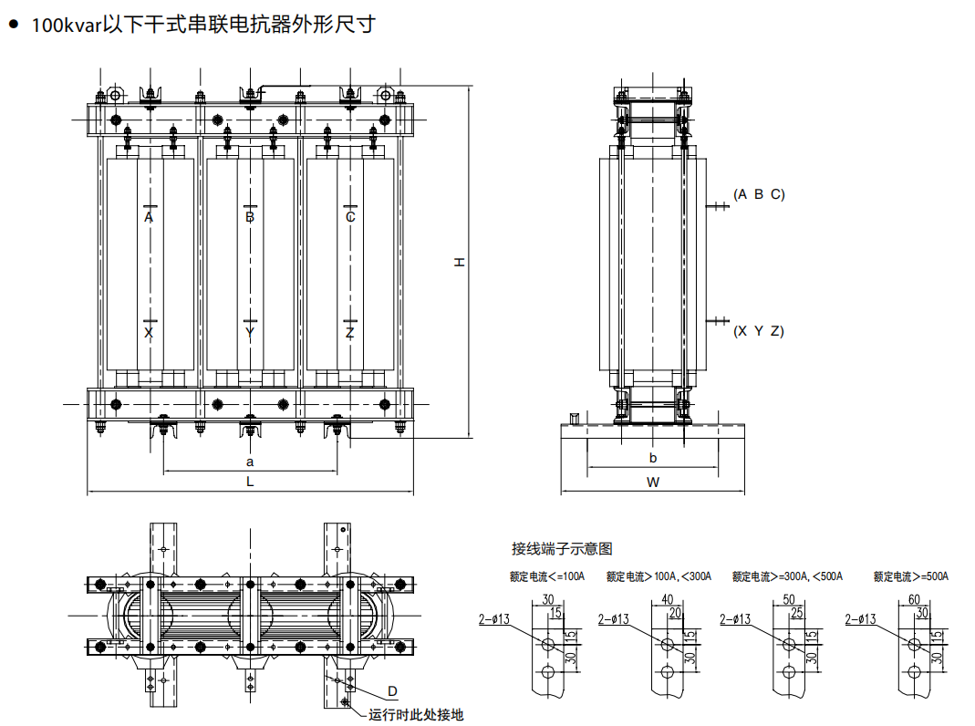 體積結構;高壓串聯電抗器三相鐵芯成黃金分割比例,結構合理,占地體積小,維護更換方便,頂部裝有吊環,便于柜內安裝及現場施工。